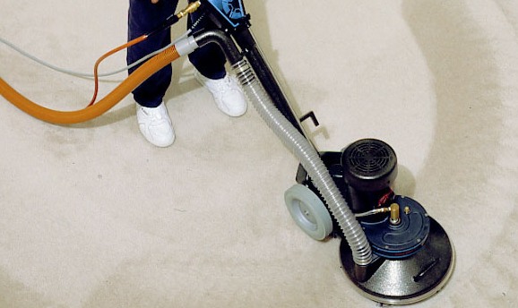Dùng máy chà kết hợp bàn chải giặt thảm chà toàn bộ bề mặt đã bơm hóa chất.
